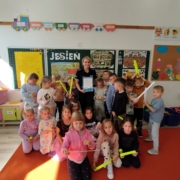 We wrześniu odwiedziła nasze przedszkole Pani Agnieszka Borowicz, mama Laurki z grupy Maczki, która jest policjantką. Opowiedziała nam o swojej pracy, pokazała jak wykonać resuscytację i przypomniała nam ważne numery alarmowe. Mogliśmy zobaczyć jak w środku wygląda radiowóz policyjny oraz jakie ciekawostki się w nim kryją. Pani Agnieszka podarowała nam odblaski oraz słodką niespodziankę a my w podzięce przygotowaliśmy kolorowe laurki. Bardzo dziękujemy za tak ważną lekcję o bezpieczeństwie.